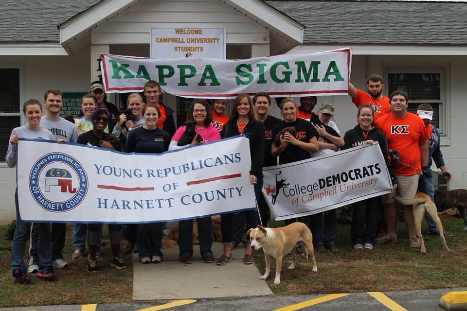 This morning Campbell College Democrats, Kappa Sigma at Campbell, and Young Republicans of Harnett County all participated in a Bipartisan Service Project at the Harnett County Animal Shelter. Along with planting bushes, painting fire hydrants, and playing with the animals they also donated over 80 lbs of dog and cat food.