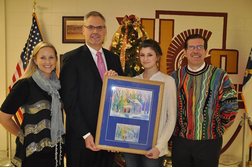 Congratulations to Aimee Tucker, senior at Harnett Central High, whose artwork was used on the official HCS Holiday Card. The Harnett County Schools holiday card, featuring a watercolor rendering of the 1902 Harnett County School, was sent out by Superintendent, Tom Frye to all school districts in the state.
