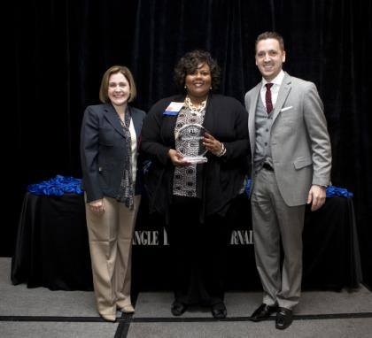 Harnett Health System for receiving a 2013 Triangle Business Journal Healthiest Employer of the Triangle award. Top 25 companies were selected for this honor and were recently recognized at an awards presentation. Cassandra… McMillan (middle), Harnett Health Director of Human Resources, holds Harnett Health’s 18th place award for being a Healthiest Employer in the Triangle. With her are Susan Gardner, South Atlantic Region Director of Account Management for Humana and Bryan Hamilton, Triangle Business Journal Publisher.