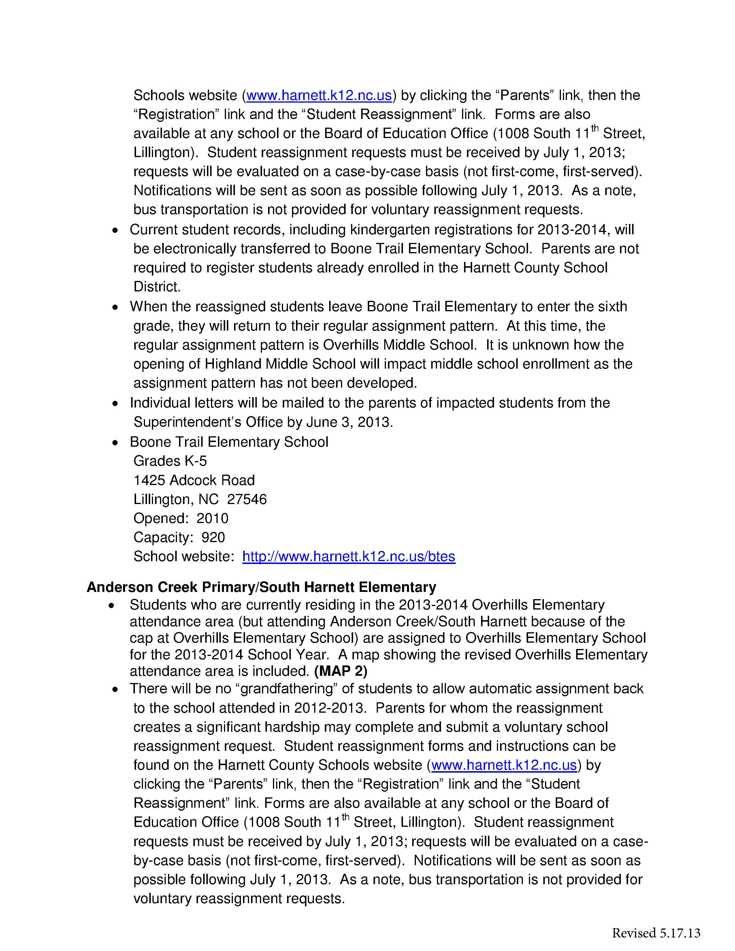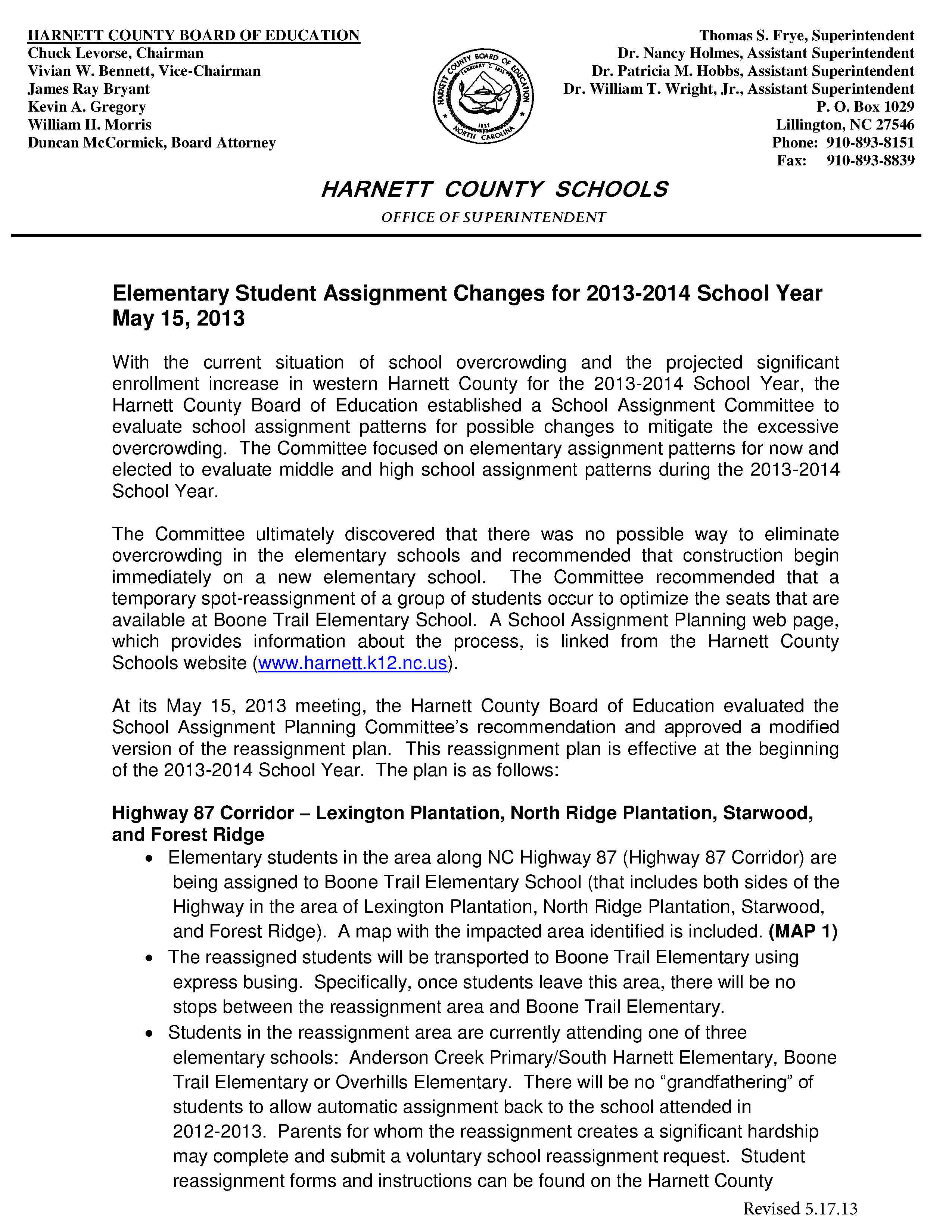 Student Assignment Changes for 2013-2014 School Year